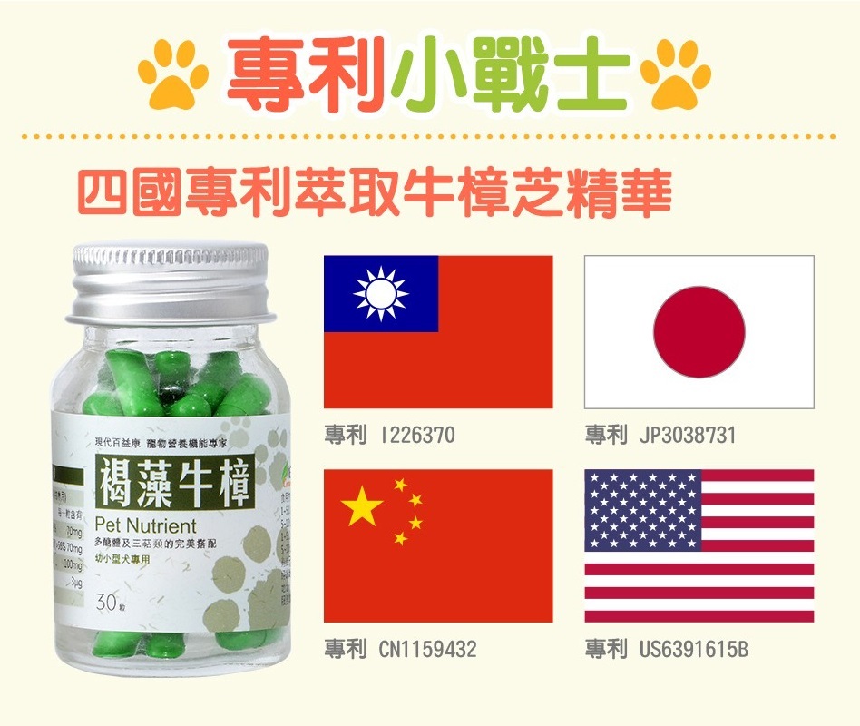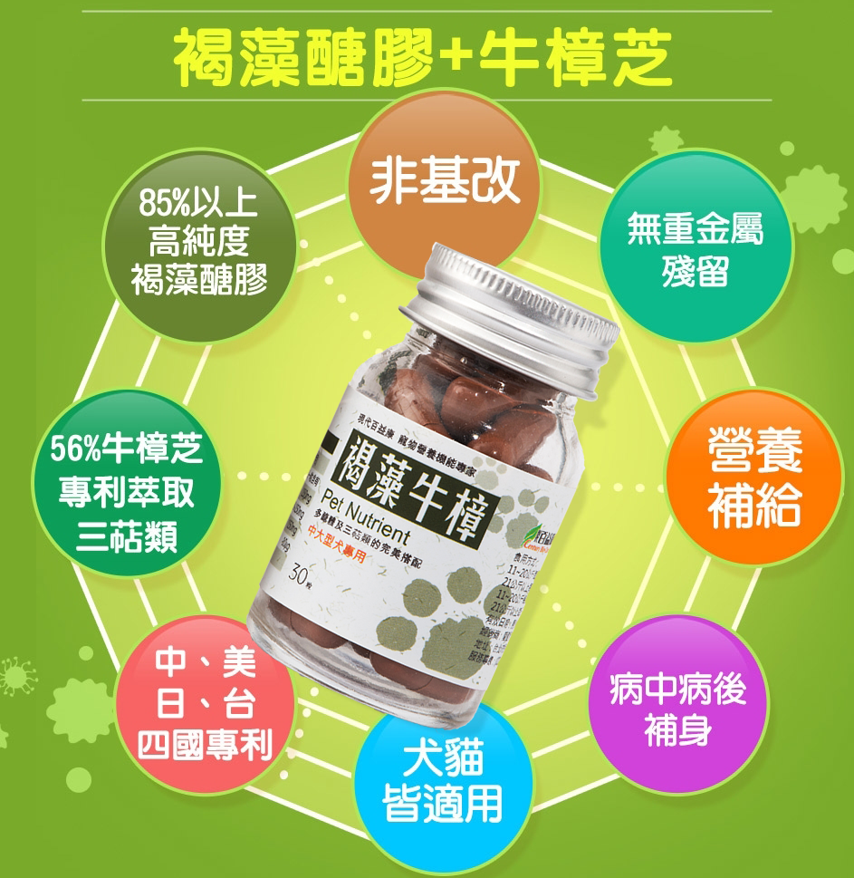 ▲褐藻牛樟 ▲適用於維持生活品質及健康的犬貓使用