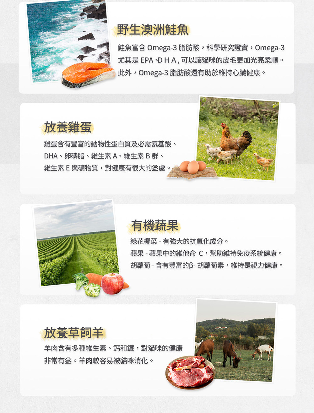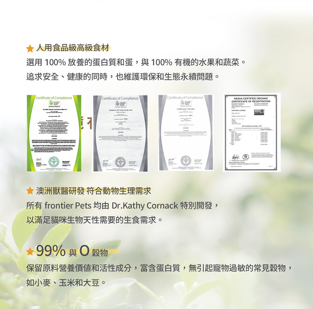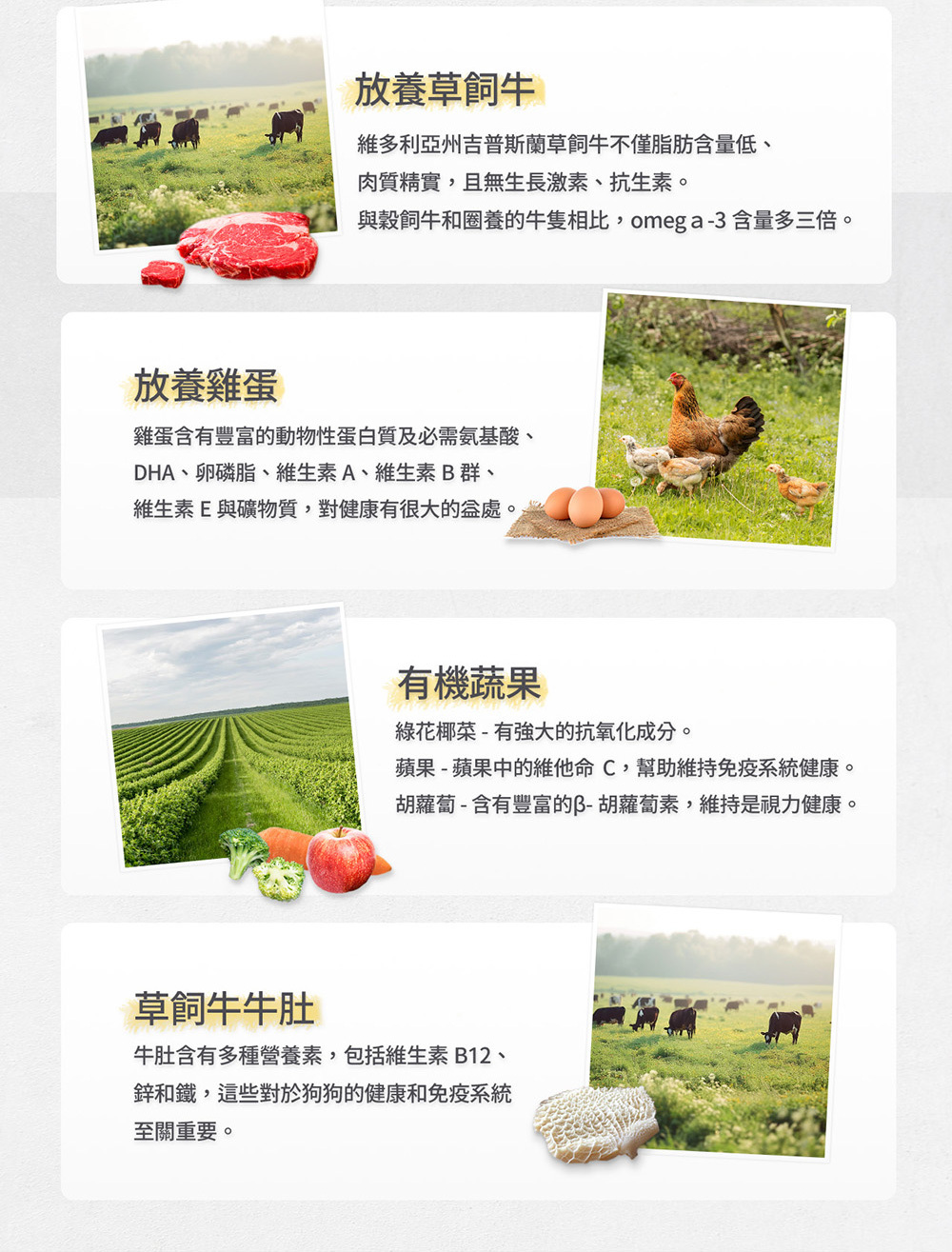 ◆以100%放養蛋白質和有機農產品為原料