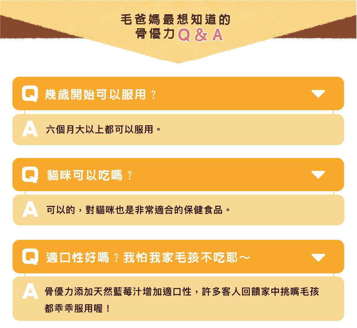 ◆韓國專利水解魚鱗膠原蛋白配方。為針對犬貓骨關節所設計之保養品,採用純度高達99%的鹽酸鹽葡萄糖胺,純度99%的乙醯葡萄糖胺,純度95%的軟骨素、II型膠原蛋白。