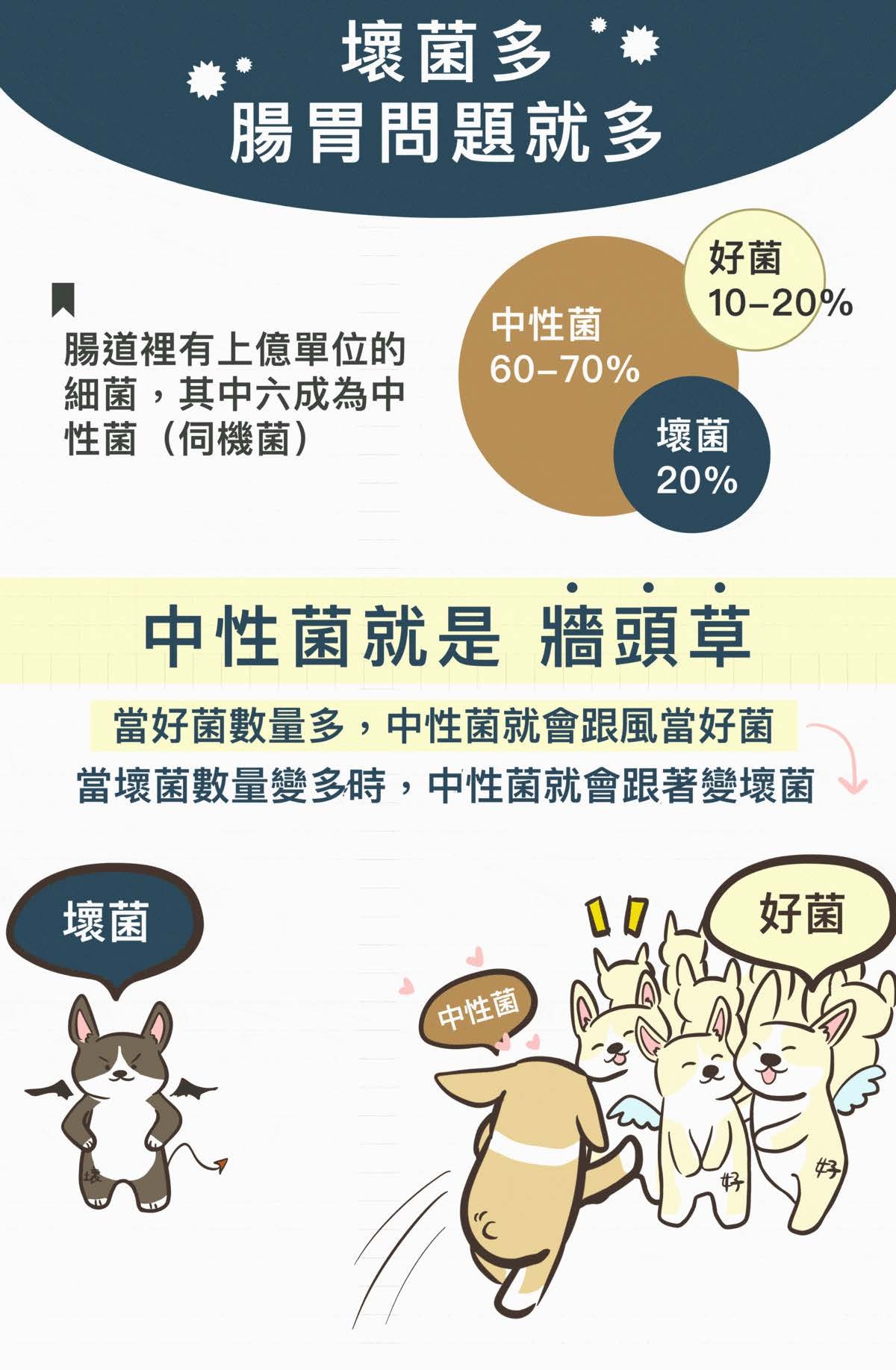 善益菌藉由調整腸道菌叢生態,以最自然方式讓狗貓做好腸胃保健!